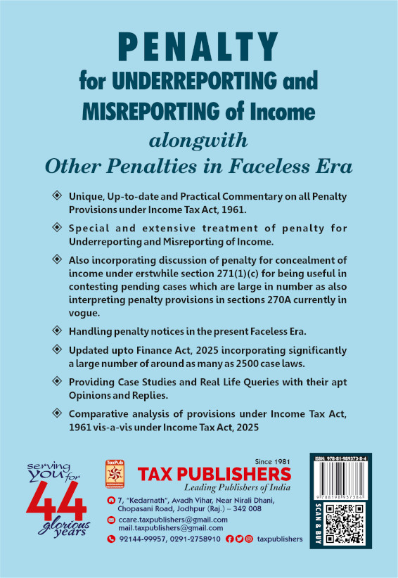 Penalty for Underreporting and Misreporting of Income alongwith Other Penalties in Faceless Era CA. (Dr.) NISHA BHANDARI 2025 Pages 752 Rs. 1610.00 For The Most Comprehensive Information In An Online Platform... Click